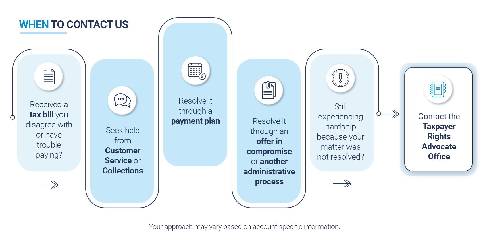 - 세금 결정, 징수 또는 집행 절차로 인해 상당한 어려움을 겪을 수 있습니다.